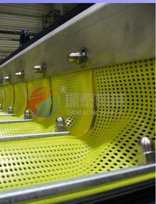 2、將香蕉篩和弛張篩的各自優(yōu)點有機地融合在一起。入料端物料速度快、料層薄,大量物料透篩,處理量高。排料端篩面傾角低,物料速度慢,這得以將剩余的篩下物徹底透篩,達到非常高的篩分效率。